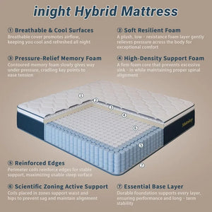 Customized products are also available to suit your specific requirements.- CUSTOMIZED COMFORT FOR SLEEPERS - queen mattress blends contouring hybrid memory foam with a 7-zone box spring system to deliver balanced support for your back, hips, and shoulders. No matter your sleep position, the mattress relieves pressure points and helps keep your spine naturally aligned