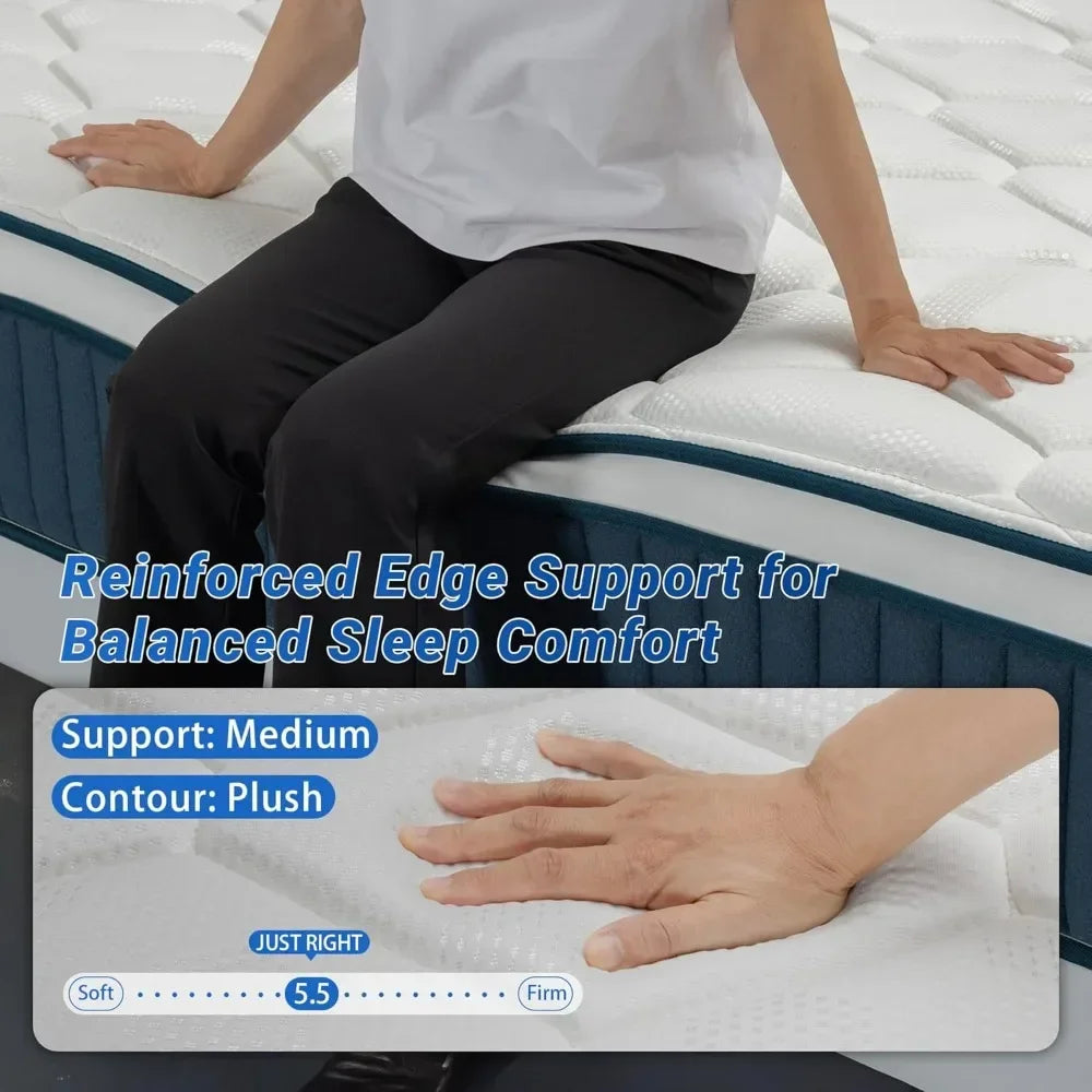 - REINFORCED EDGES & STRONG SUPPORT - queen size mattresses features reinforced edge support and high-density coils that prevent sagging. You can sit or stretch out across the queen bed mattress with total confidence, enjoying a stable surface that feels supportive from edge to edge